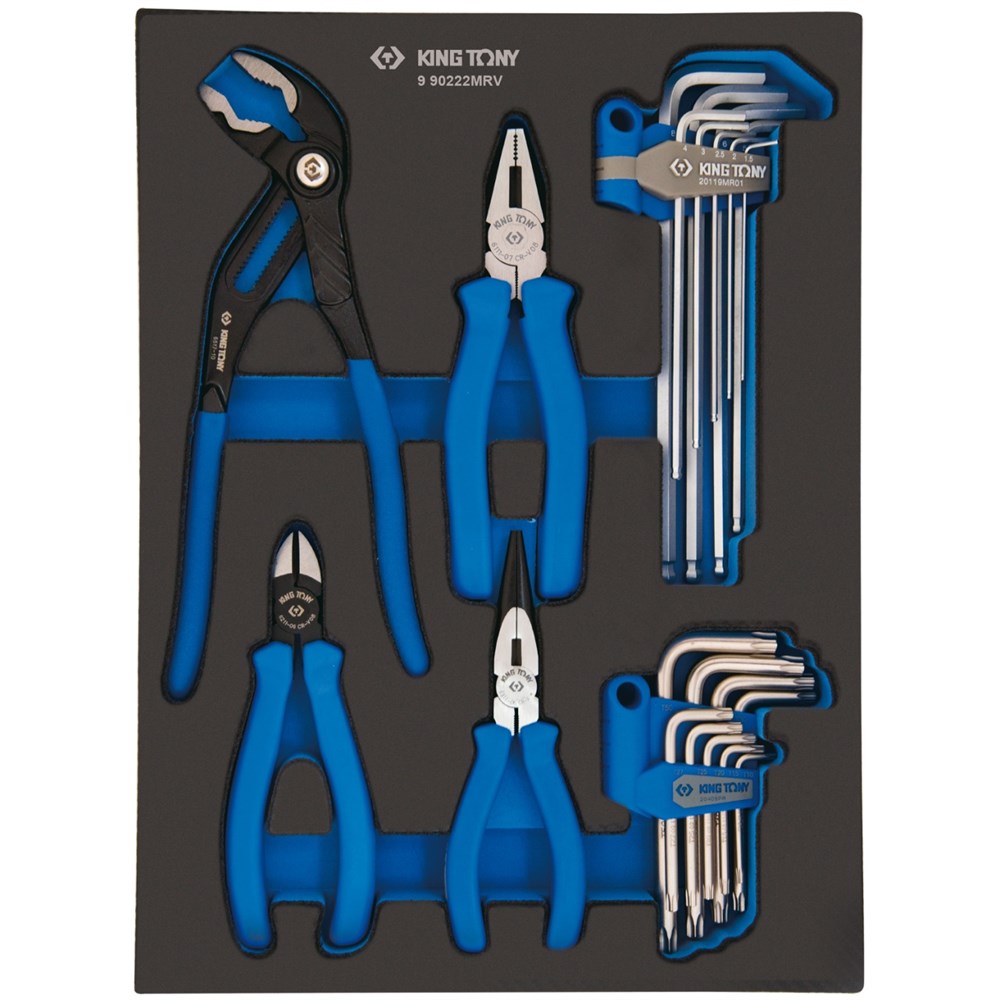 Материалы – инструментальные стали Cr-V, Cr-Mo, конструкционная сталь, хром, обливной PVC (рукоять захвата), PP+TPR (рукояти), EVA (ложемент)