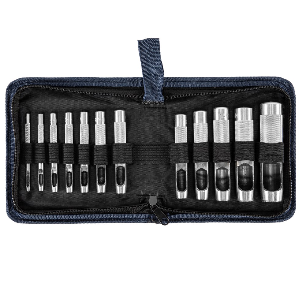 КомплектацияПробойники для кожи 3, 4, 5, 6, 7, 8, 9, 10, 12, 14, 16, 19 мм - 12 шт