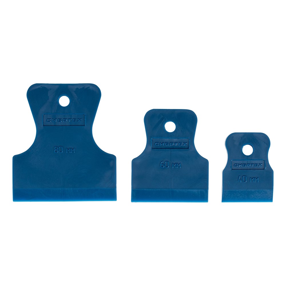 Набор шпателей Сибртех 85830 включает в себя три шпателя различных размеров: 40 мм, 60 мм и 80 мм. Эти шпатели идеально подходят для создания финишных покрытий, затирки плиточных швов и работы с герметиками.