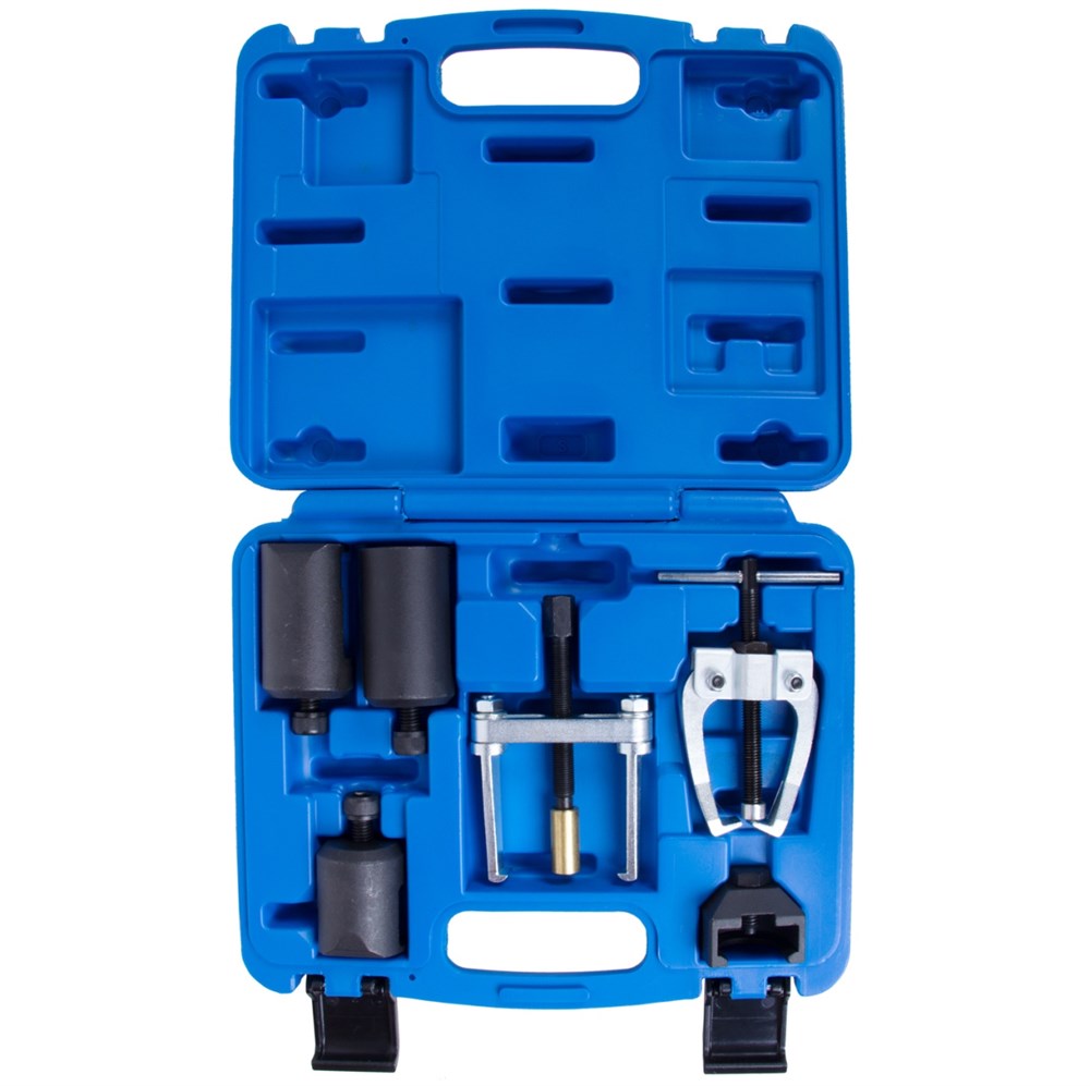 Назначение: Применяется для демонтажа поводков стеклоочистителя, не повреждая конструкцию обтекателей. Область применения: Автосервисы, СТО. Особенности: • Позволяет работать в условиях ограниченного доступа к поводкам. • Специальная форма съемников подходит к моделям автомобилей большинства марок. Комплектация: • Съемники струбцинного типа – 4 шт. • Съемники двухлапые – 2 шт. • Пластиковый кейс. Технические характеристики: Материал инструментальная сталь, конструкционная сталь, покрытие хром, анодирование.