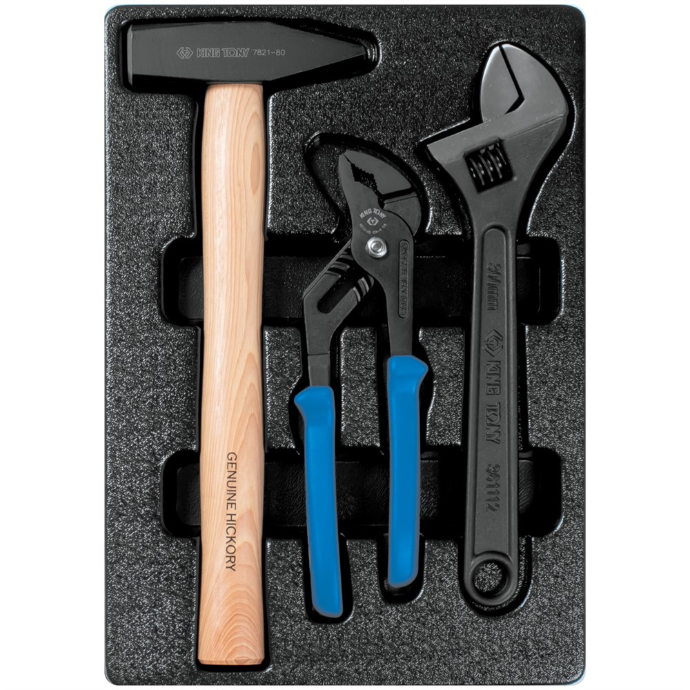Набор переставные клещи, разводной ключ и молоток, ложемент, 3 предмета KING TONY 9-90103PP02 TONY