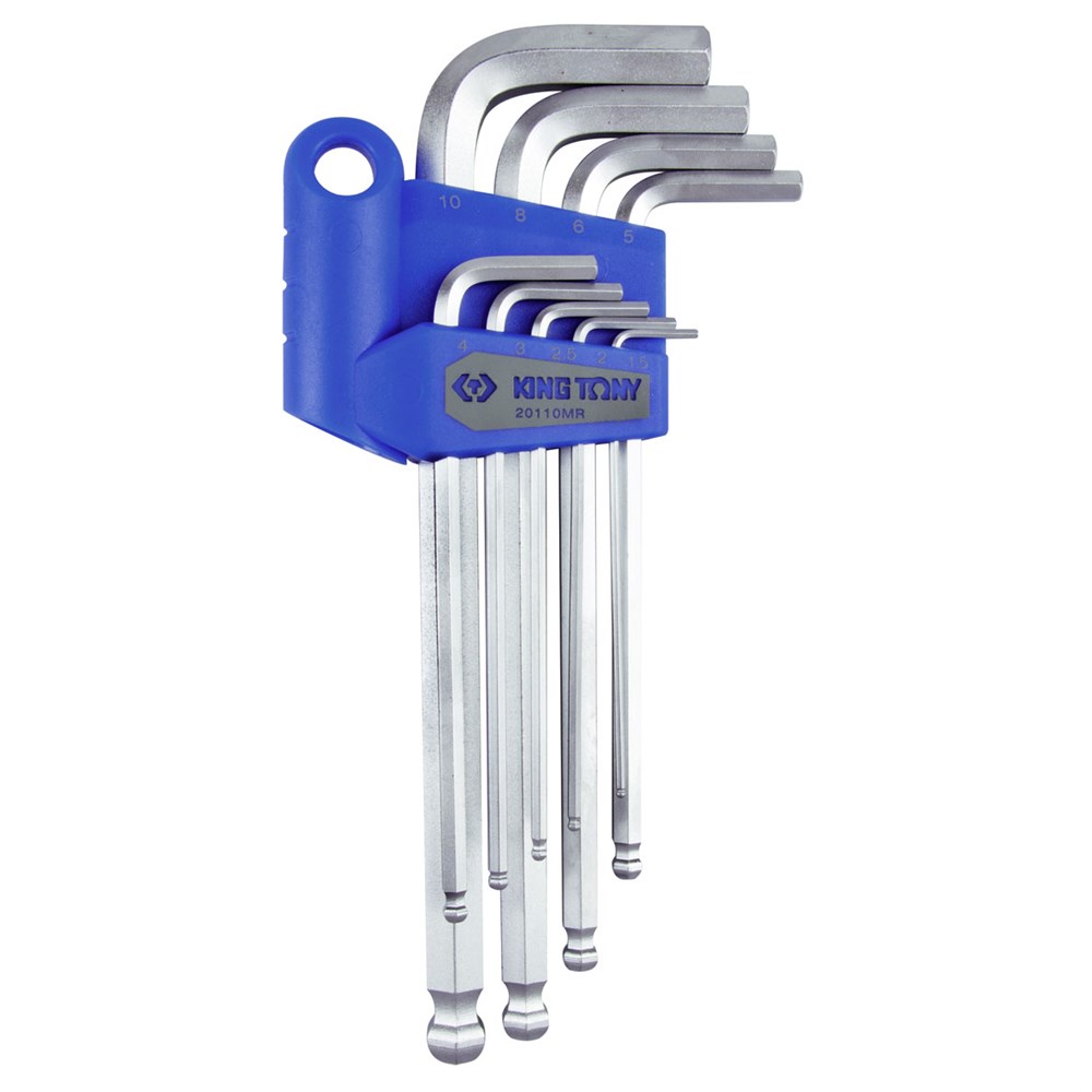 Набор Г-образных шестигранников 1,5-10 мм, длинные, с шаровым окончанием, 9 предметов KING TONY 20110MR TONY