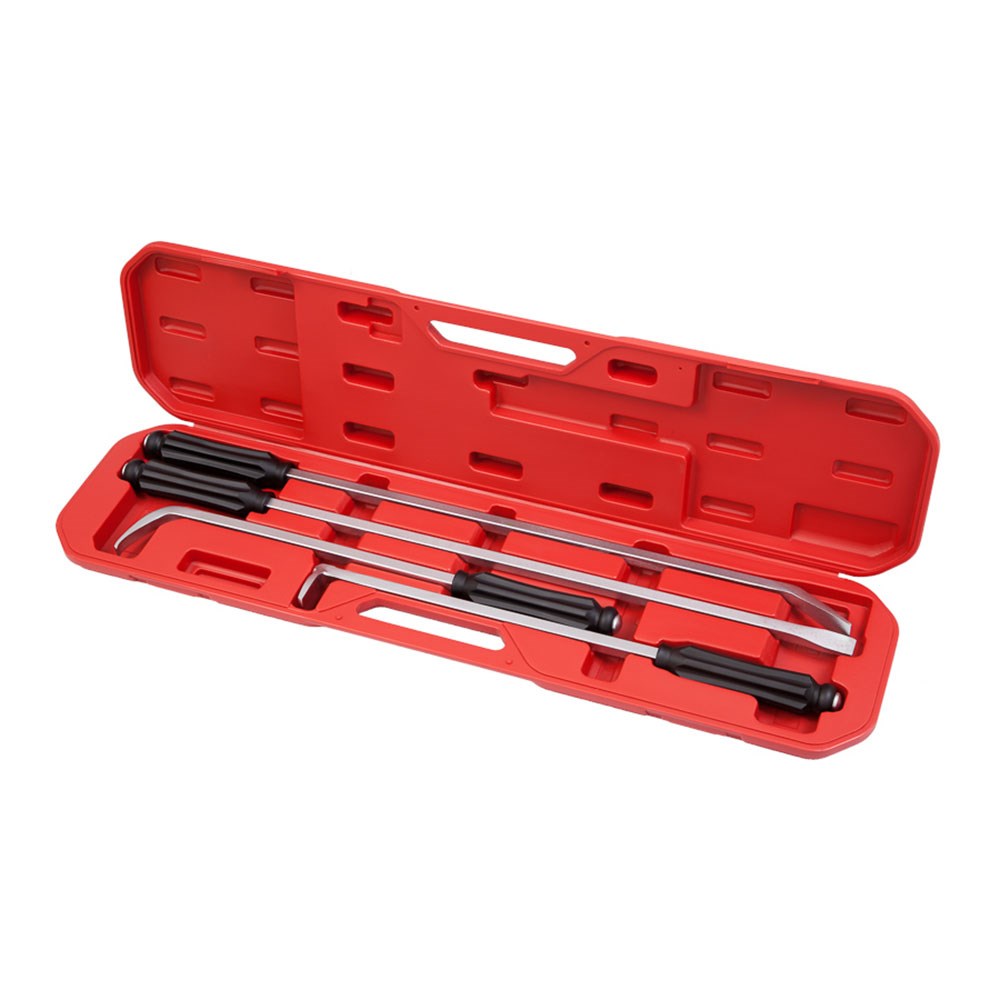 Назначение: Предназначены для проведения ремонтных и диагностических работ, а также во время обслуживания двигателя внутреннего сгорания, ГБЦ, коробки передач, ходовых частей и пр.: - снятие плотно сидящих деталей; - позиционирование деталей; - фиксирование деталей в определенном положении. Область применения: Станции технического обслуживания (СТО), автосервисы, автомастерские. Особенности: • Инструмент расположен в пластиковом кейсе для комфортного хранения и транспортировки; • Изготовлены из прочной инструментальной стали. Комплектация и технические характеристики: В комплекте 4 монтировки: Прямая монтировка 16х905 мм Угловая (30°) монтировка 16х905 мм Угловая (70°) монтировка 16х615 мм Угловая (90°) монтировка 16х615 мм Пластиковый кейс 1000 x 250 x 80 мм Вес 9 кг МАСТАК – ты знаешь как!