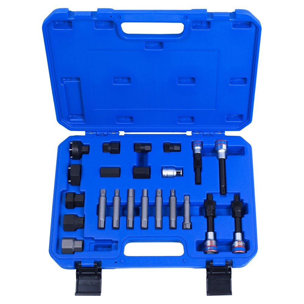 Набор предназначен для работ монтажу и демонтажу генератора. Набор подходит для ремонта генераторов Bosch, Valeo, Маджетик Марелли, Denso, и т.д. Специальные головки различных размеров и профилей применимы для ремонта генераторов, установленных на автомобилях марок VW, Audi, Citroen/Peugeot, Mercedes, Renault, BMWХарактеристики