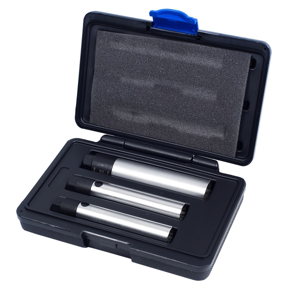 В комплекте: Головка свечная 14мм, 12 граней Размер под вороток: 3/8" Размер под ключ: 17мм Внешний диаметр: 19,7мм Фиксированное усилие затяжки: 19Nm Головка свечная 16мм, 12 граней Размер под вороток: 3/8" Размер под ключ: 19мм Внешний диаметр: 21,0мм Фиксированное усилие затяжки: 20Nm Головка свечная 21мм, 12 граней Размер под вороток: 3/8" Размер под ключ: 21мм Внешний диаметр: 27,9мм Фиксированное усилие затяжки: 25Nm