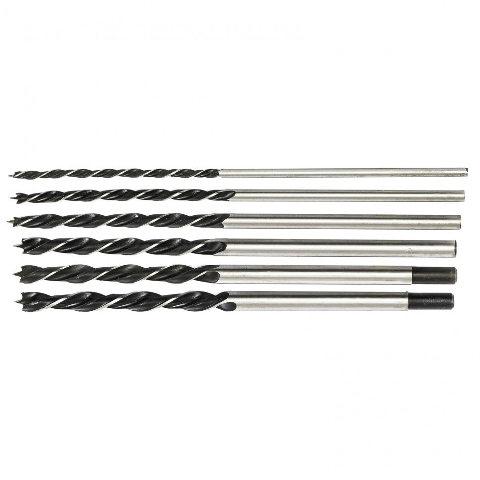 Набор сверл по дереву, 6-8-10-12-13-14 мм, L 300 мм, 6 шт, цилиндрический хвостовик Сибртех 702235