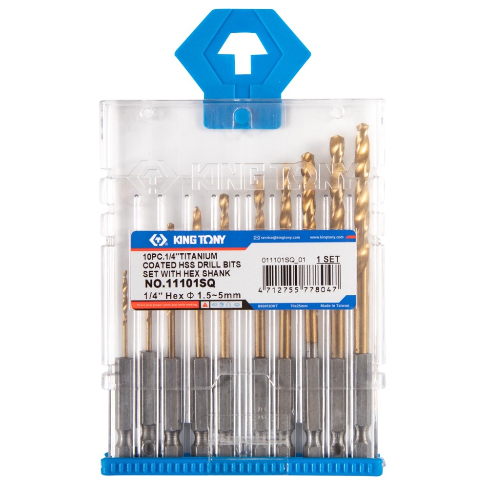 Набор сверл по металлу HSS Tin 1,5-5,0 мм, с шестигранным хвостовиком, 10 предметов KING TONY 11101SQ TONY