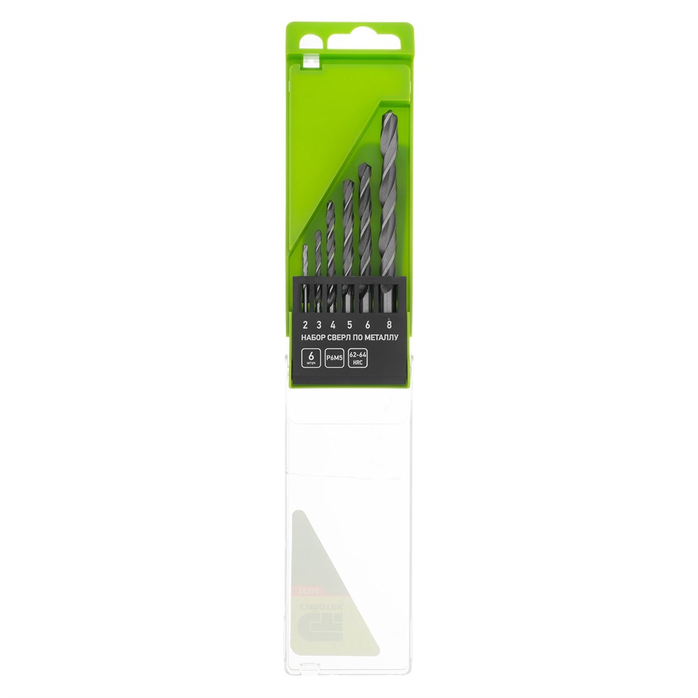 Набор сверл по металлу, 2-8 мм, 6 шт, Р6М5, пластиковый кейс, Сибртех 72348