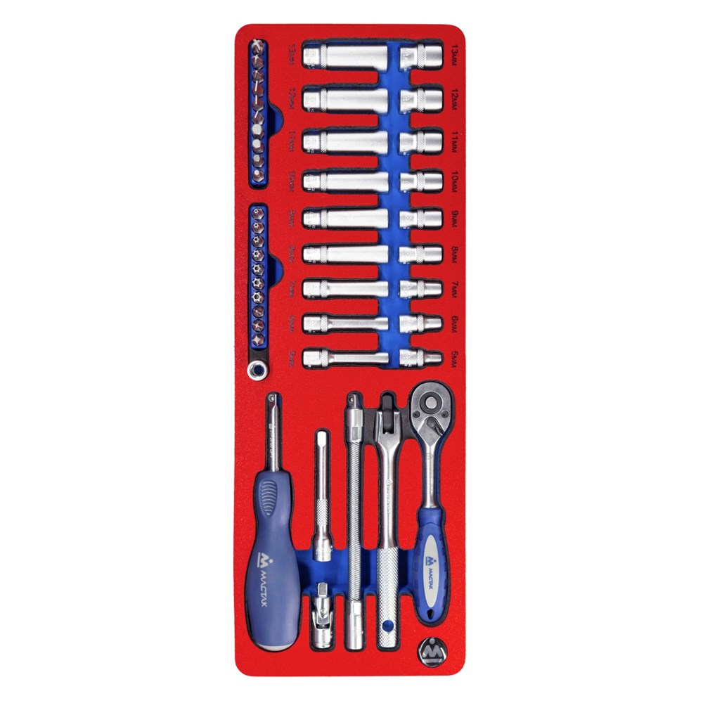 Набор торцевых головок 1/4” с принадлежностями, ложемент, 45 предметов МАСТАК 5-002045 5-002045