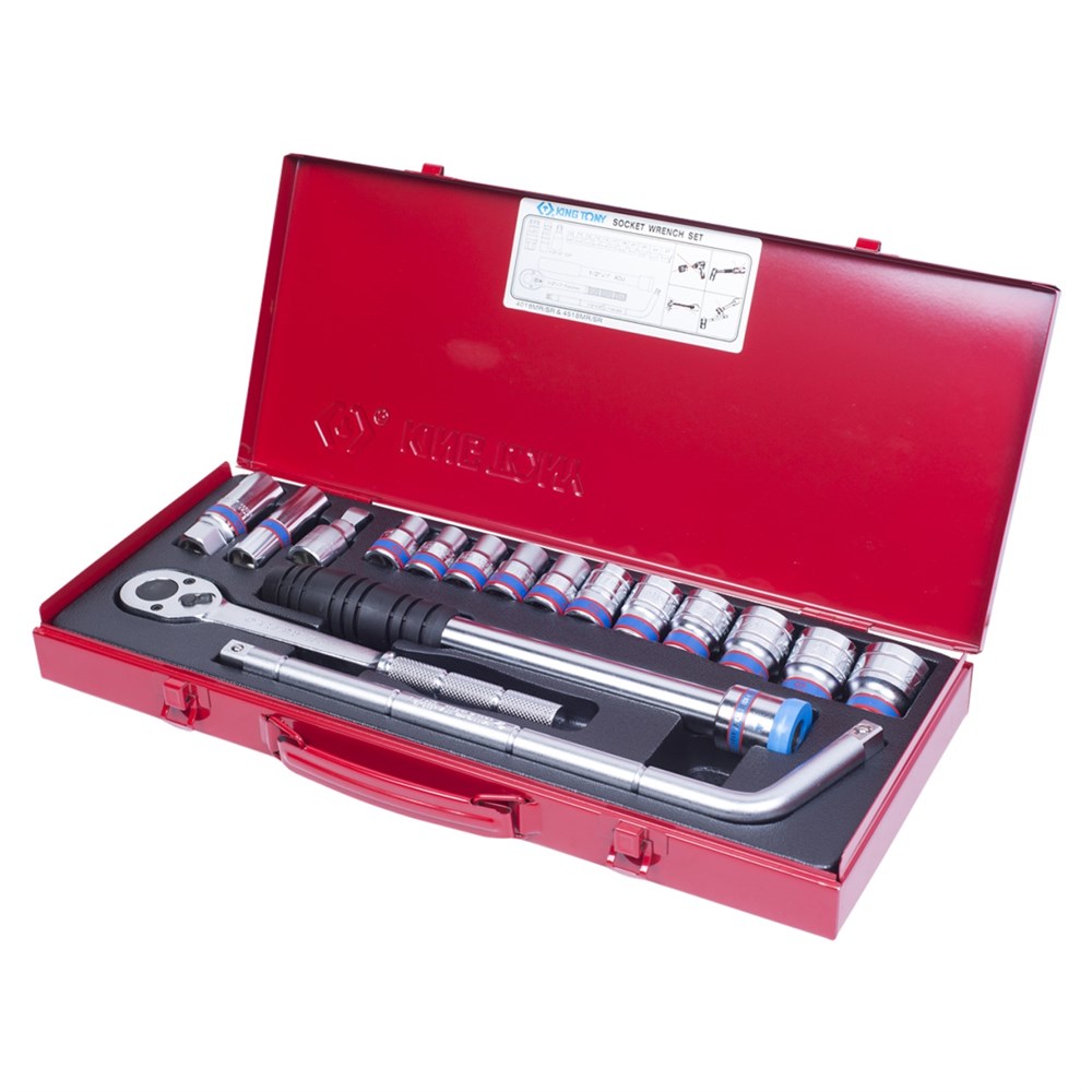 Набор торцевых головок с принадлежностями 1/2", двенадцатигранные, 10-27 мм, 17 предметов KING TONY 4018MR TONY