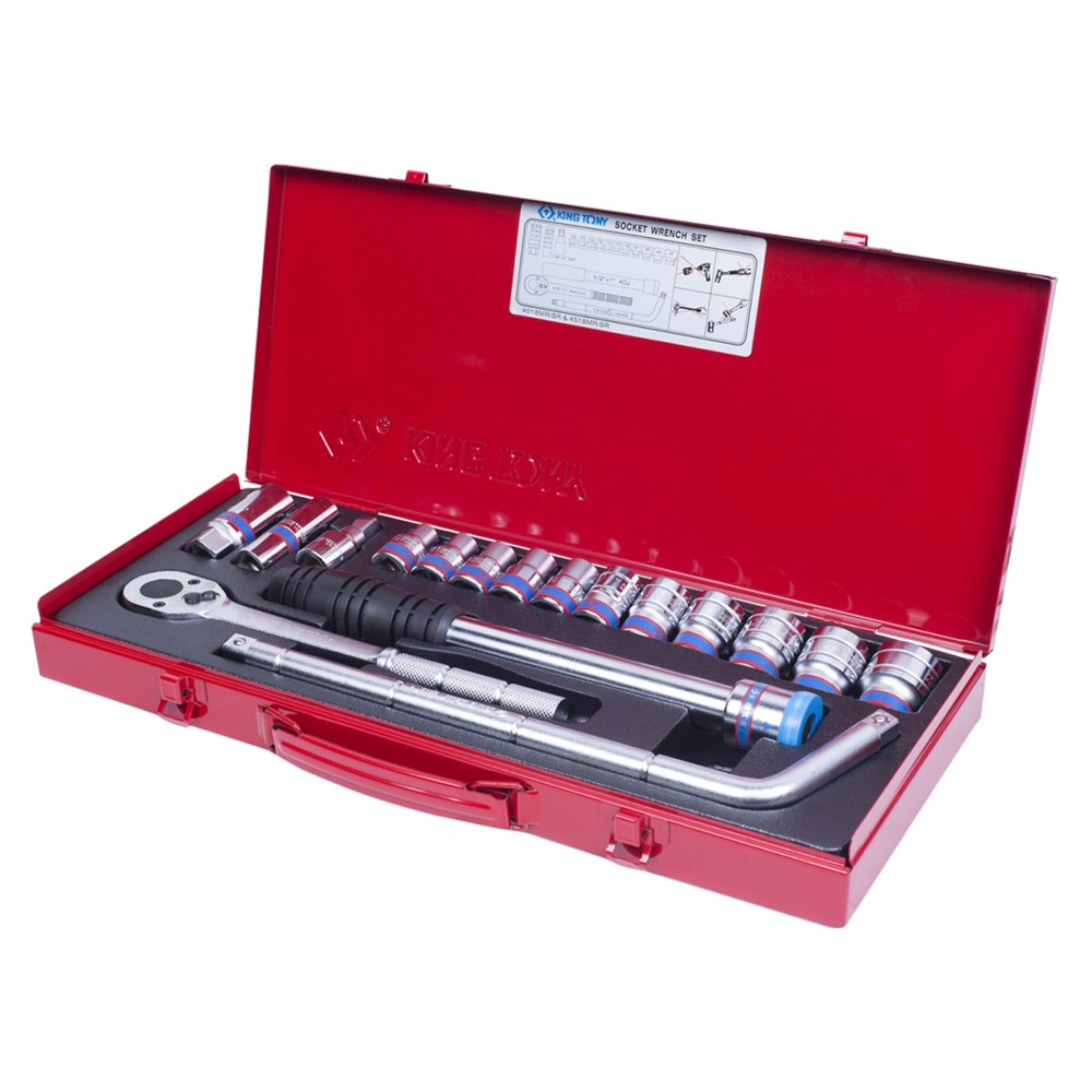 Набор торцевых головок с принадлежностями 1/2", шестигранные, 10-27 мм, 17 предметов KING TONY 4518MR TONY