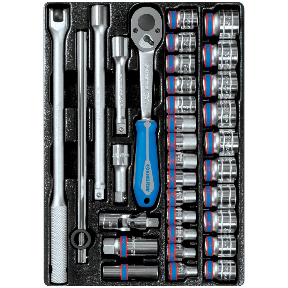 Материалы – инструментальные стали Cr-V, Cr-Mo, конструкционная сталь, хром, PP+TPR (рукоять трещотки), PVC (ложемент)