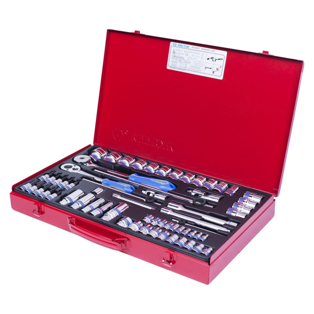 Набор торцевых головок с принадлежностями 1/4", 3/8", 1/2", двенадцатигранные, 4-32 мм, 62 предмета KING TONY 9063MR01 TONY