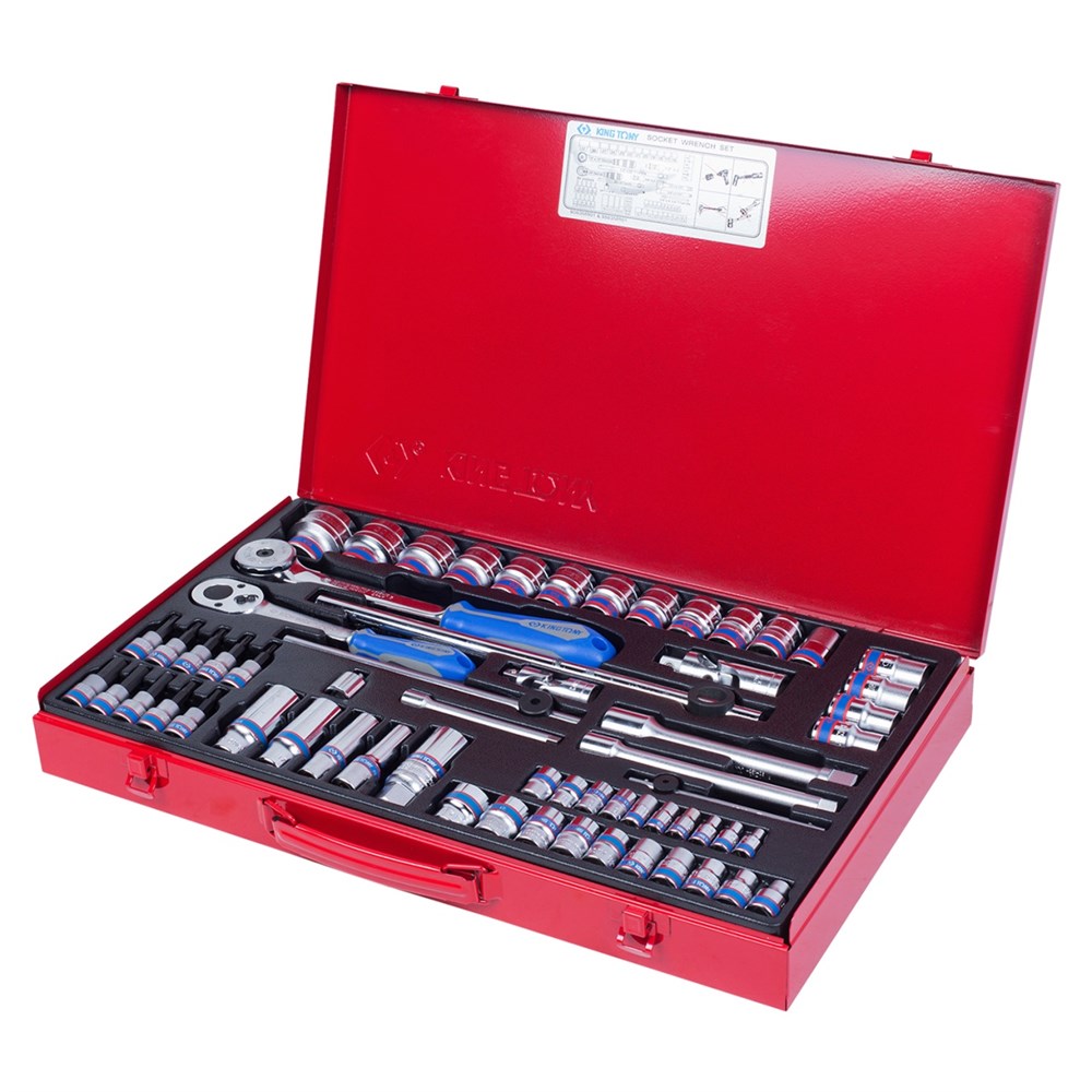 Набор торцевых головок с принадлежностями 1/4", 3/8", 1/2", шестигранные, 4-32 мм, 62 предмета KING TONY 9563MR01 TONY
