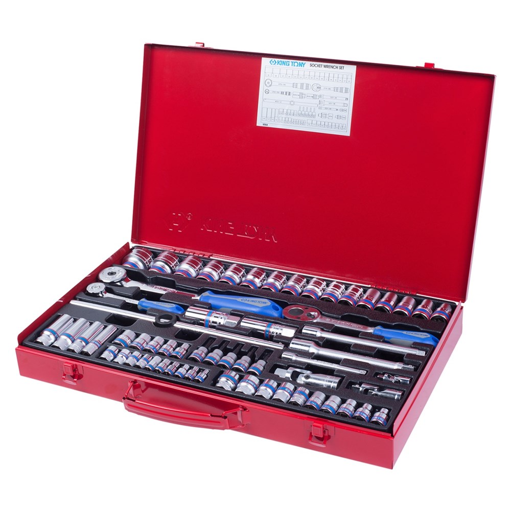 Набор торцевых головок с принадлежностями 1/4", 3/8", 1/2", шестигранные, 4-32 мм, 62 предмета KING TONY 9564MR TONY