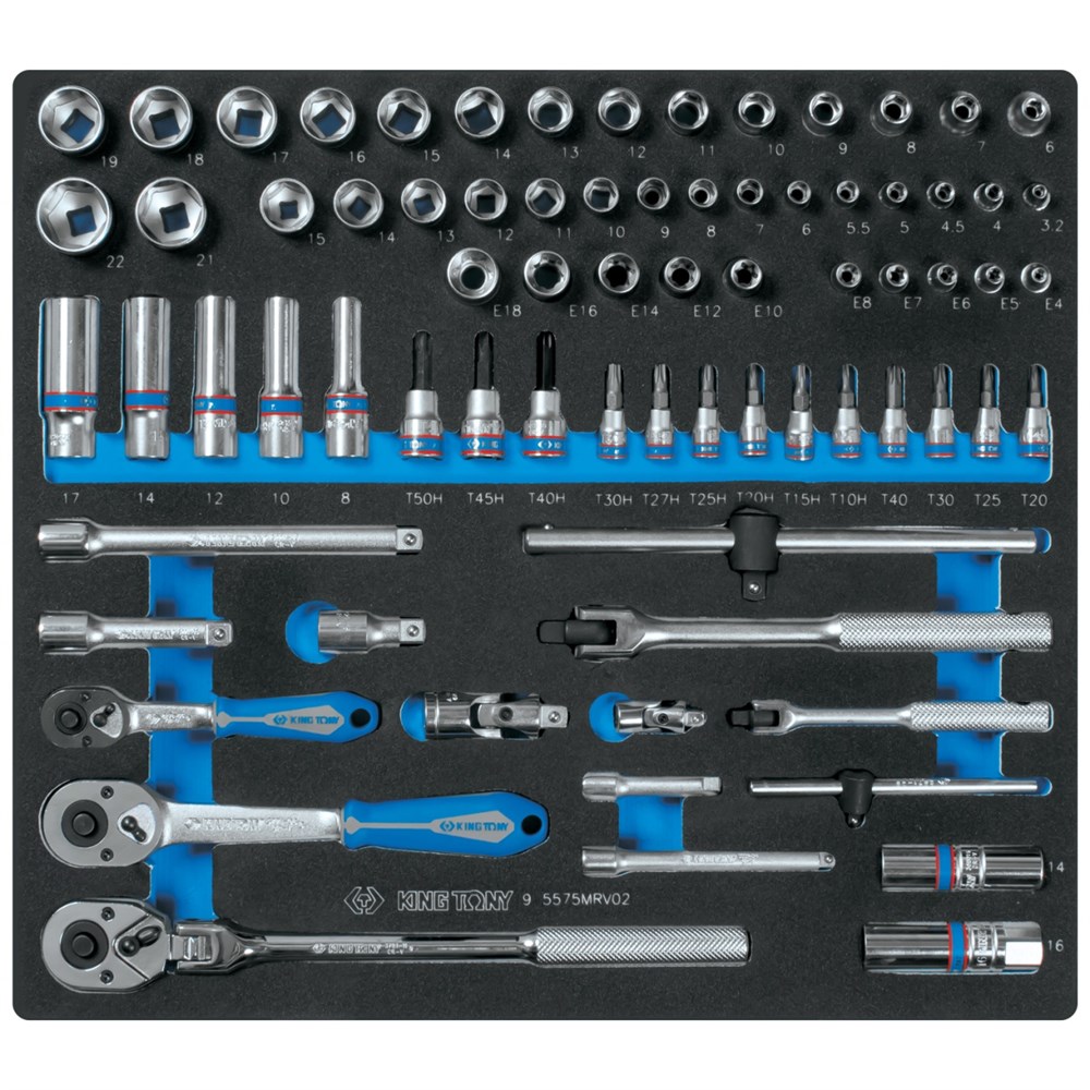 Набор торцевых головок 1/4", 3/8" с принадлежностями, ложемент, 75 предметов KING TONY 9-5575MRV02 TONY