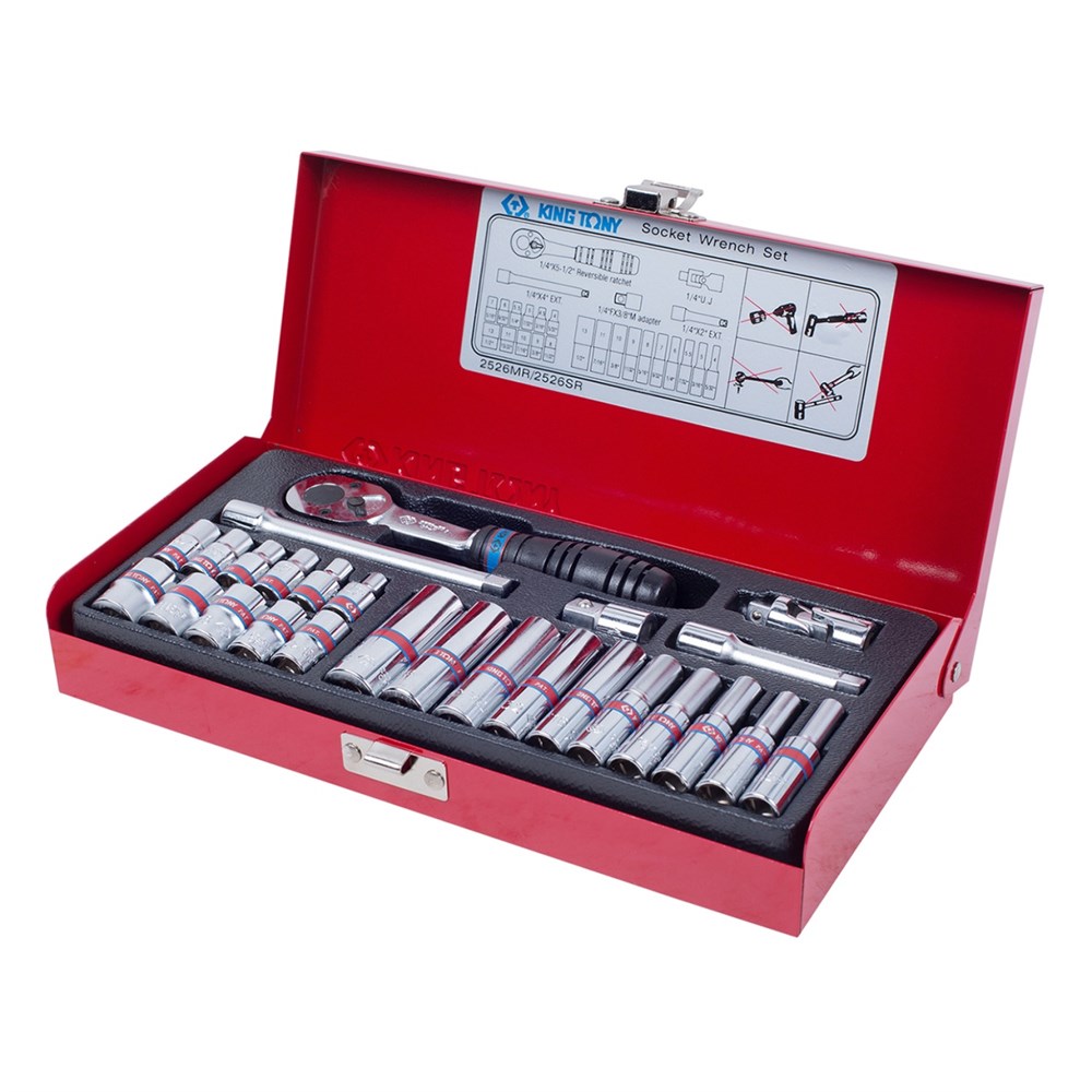 Набор торцевых головок с принадлежностями 1/4", шестигранные, 5/32"-1/2", 26 предметов KING TONY 2526SR TONY