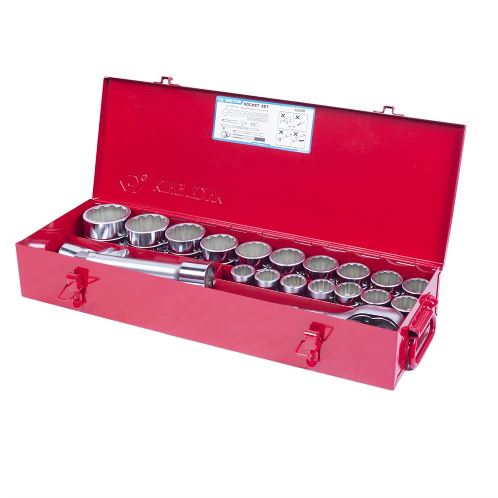 Набор торцевых головок с принадлежностями 3/4", двенадцатигранные, 21-50 мм, 23 предмета KING TONY 6023MR TONY