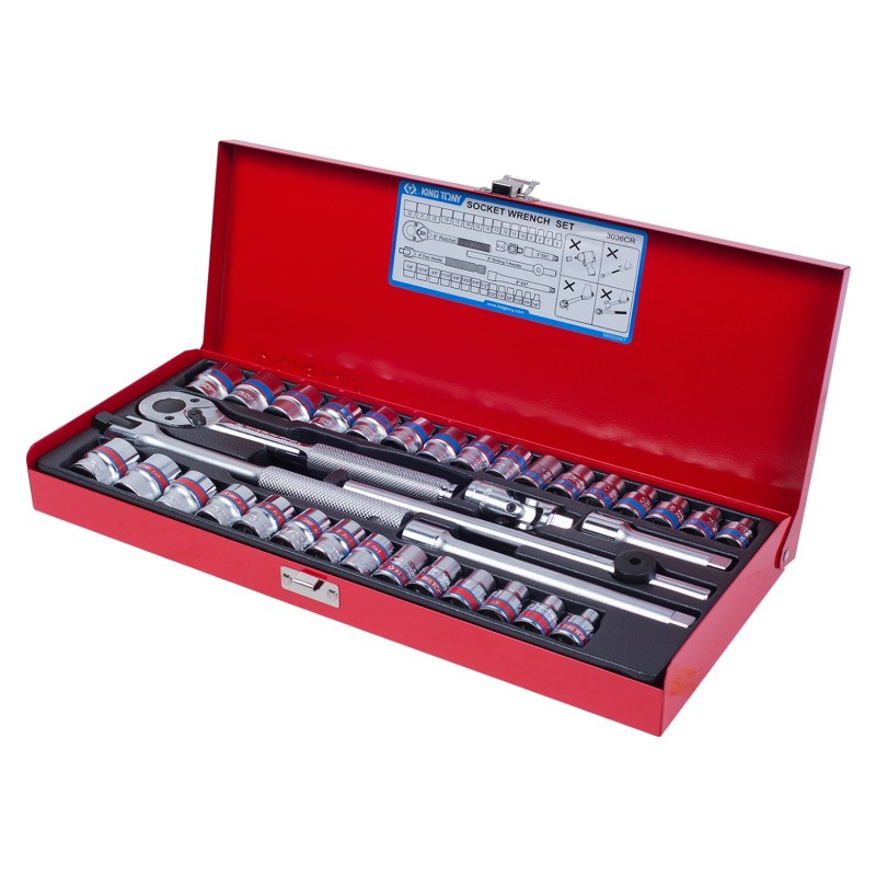 Набор торцевых головок с принадлежностями 3/8", двенадцатигранные, 6-22 мм, 1/4"-13/16", 36 предметов KING TONY 3036CR TONY