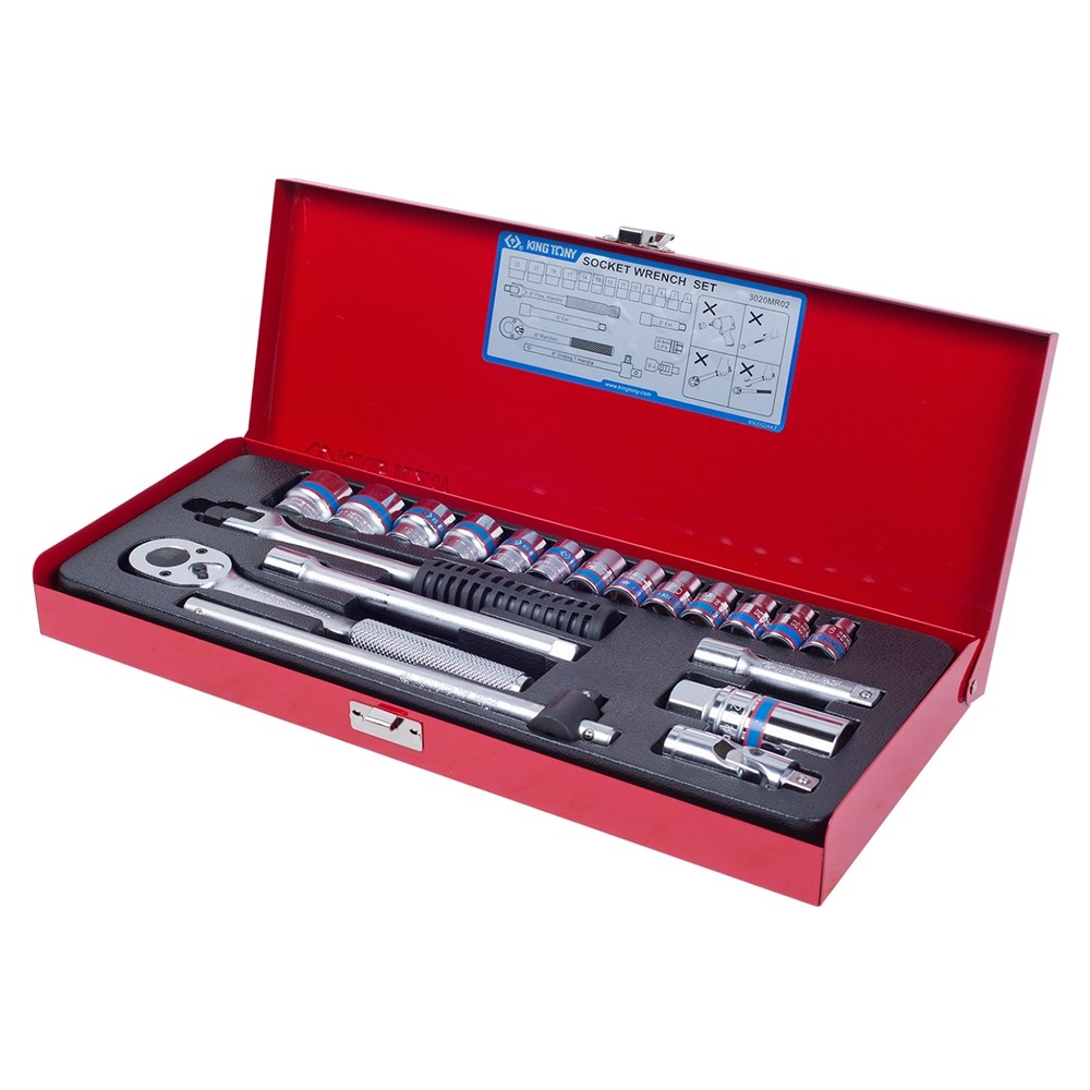 Набор торцевых головок с принадлежностями 3/8", двенадцатигранные, 6-22 мм, 20 предметов KING TONY 3020MR02 TONY