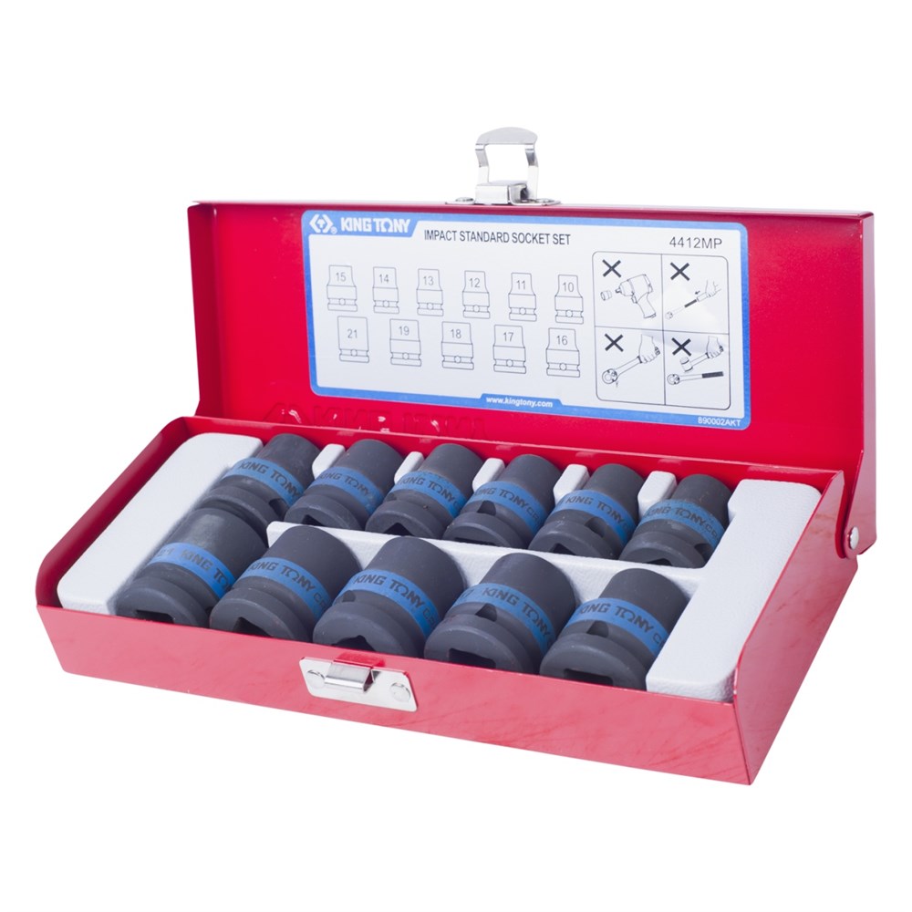 Набор ударных торцевых головок 1/2", шестигранные, 10-21 мм, 11 предметов KING TONY 4412MP TONY
