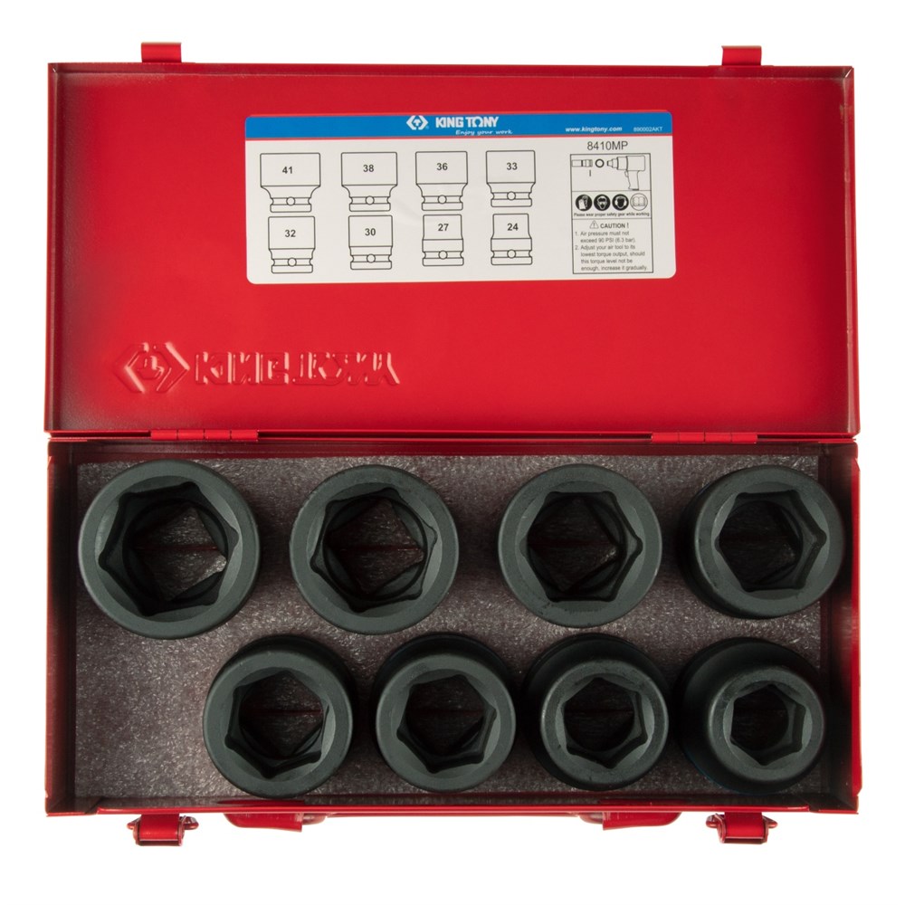 Набор ударных торцевых головок 1", шестигранные, 24-41 мм, 8 предметов KING TONY 8410MP TONY