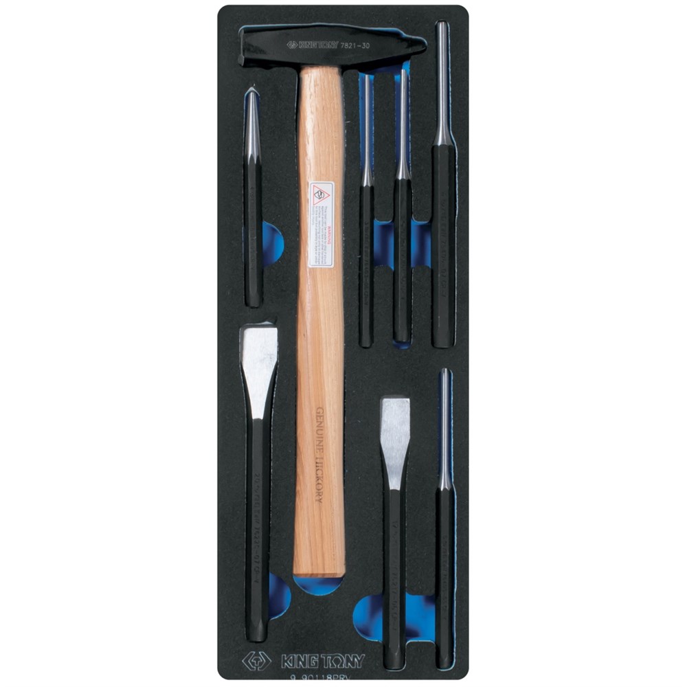 Набор зубил, выколоток, кернеров с молотком, ложемент, 8 предметов KING TONY 9-90118PRV TONY