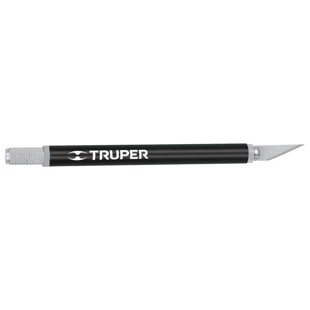 Нож cтроительный Truper EXA-6 16969 — специализированный инструмент для декораторов, оснащённый лезвиями из высококачественной стали SK-5 и лёгким алюминиевым корпусом. В комплекте поставляется 5 сменных лезвий, обеспечивающих точность и удобство при декоративных и ремонтных работах.