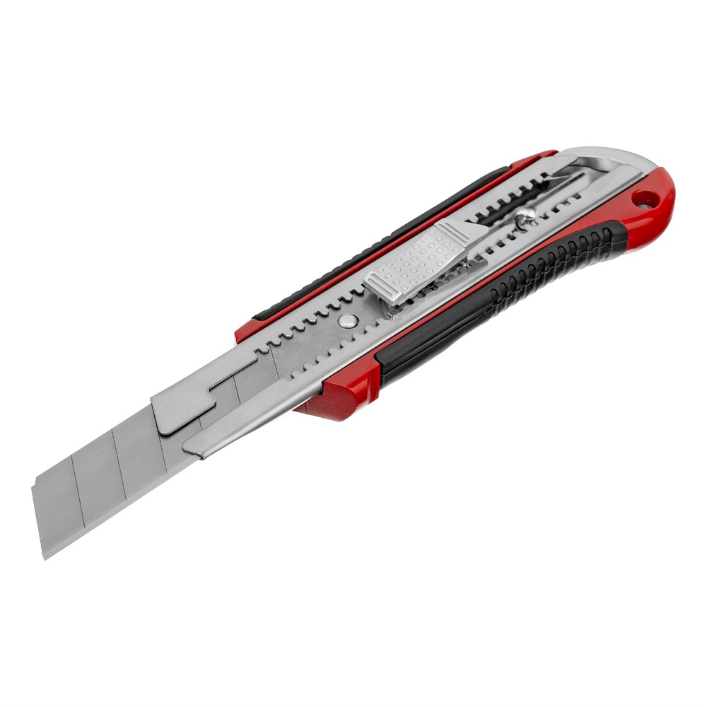 Нож, 25 мм, выдвижное лезвие, усиленная металлическая направляющая, металлическая обрезиненная рукоятка Matrix 78959
