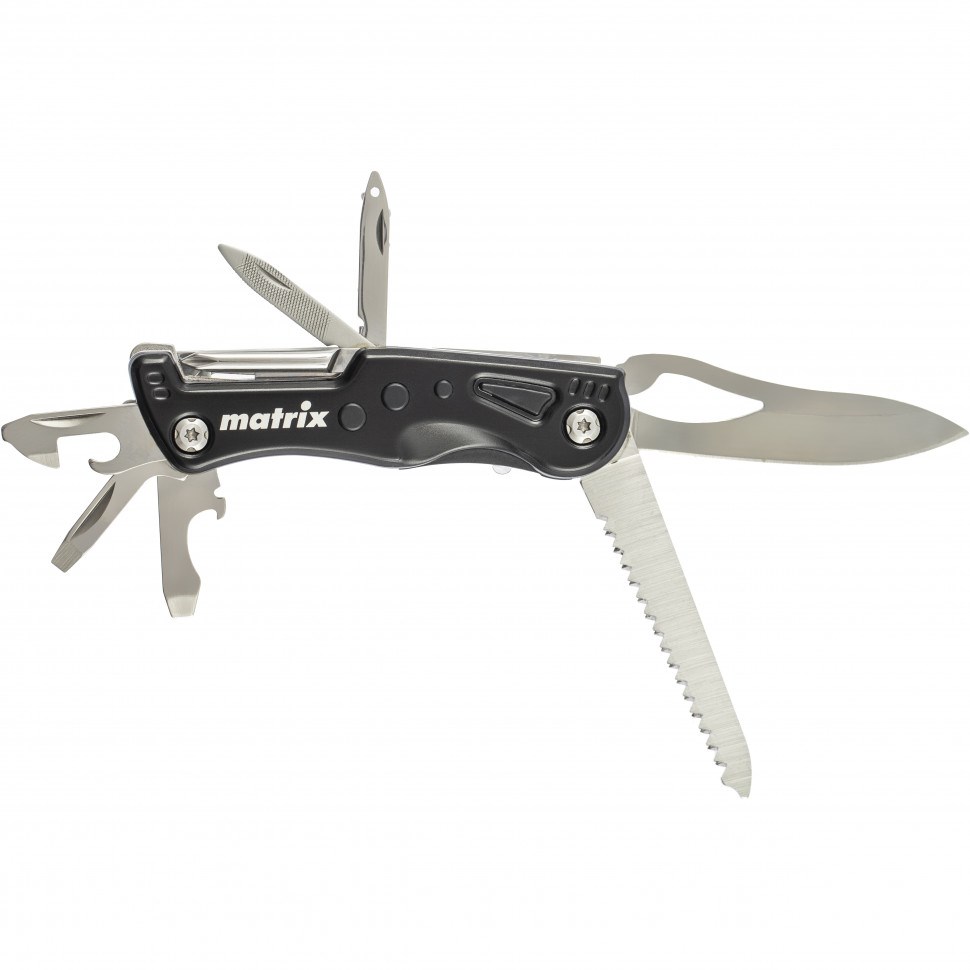 Нож Matrix 17625 станет вашим верным помощником в различных ситуациях. С его помощью можно резать продукты и материалы, пилой срезать тонкие ветки, а шилом проделывать отверстия. Открывалки удобно использовать для открытия банок, а пилка для ногтей найдёт применение в быту.