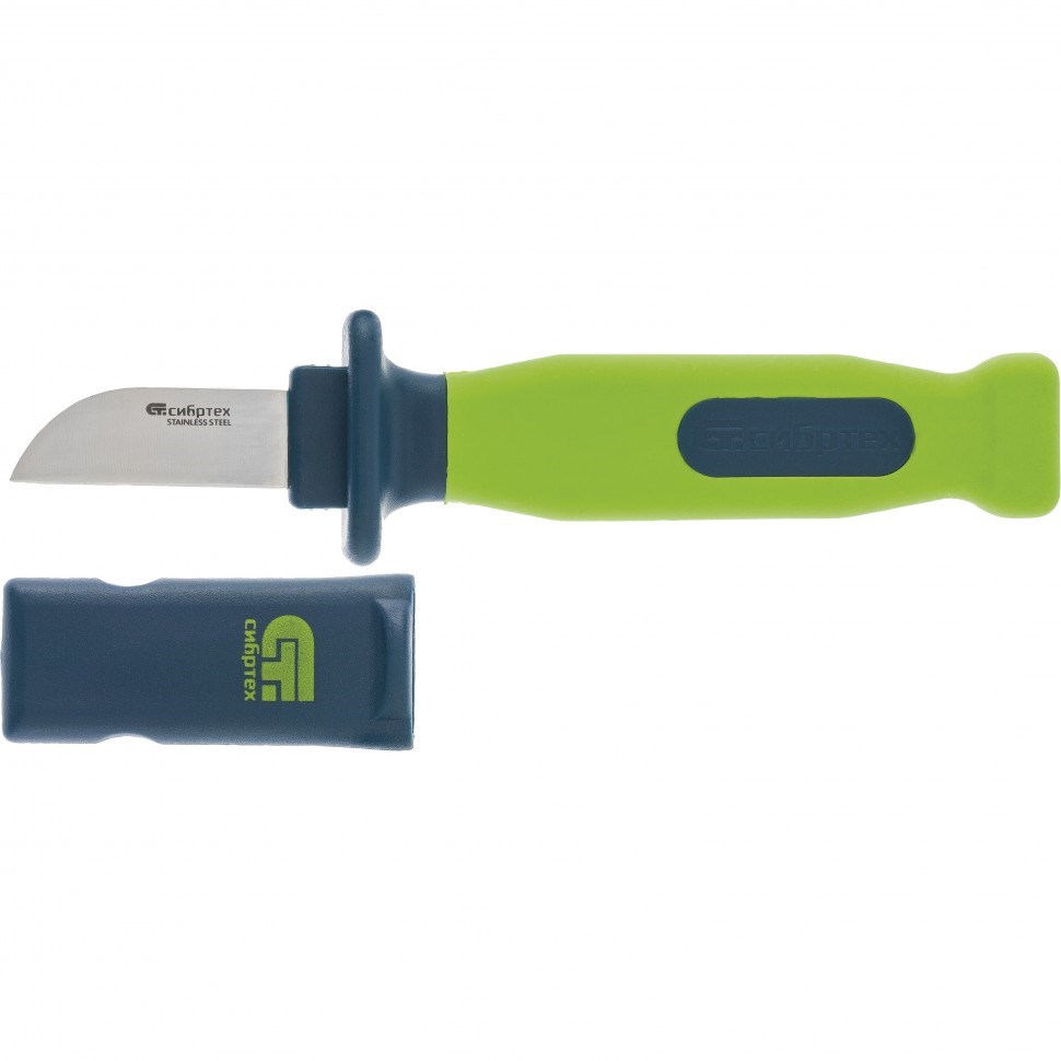 Нож монтажника с чехлом, обрезиненная рукоятка, 197 мм, лезвие 50 мм Сибртех 79014