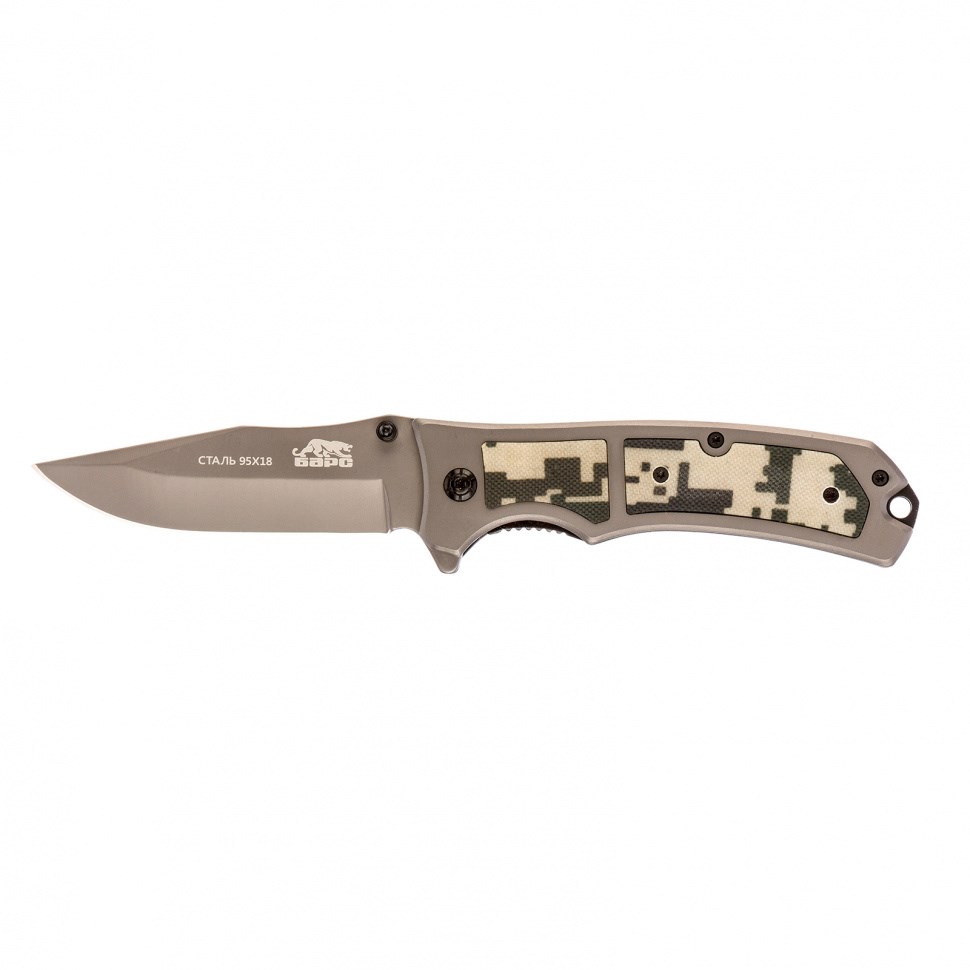 Нож туристический, складной, 210/85 мм, система Liner-Lock, с накладкой G10 на рукоятке Барс 79204
