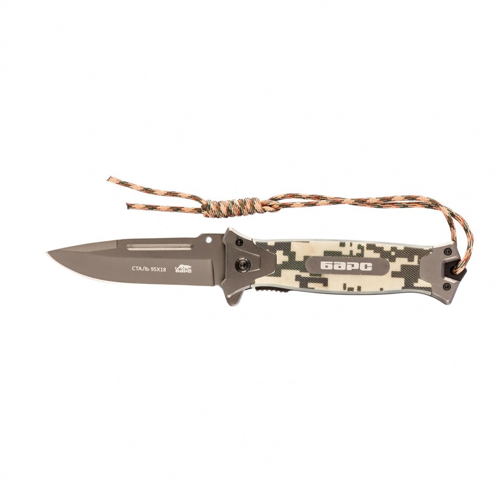 - Удобен в транспортировке — нож можно закрепить на ремне с помощью клипсы или повесить на запястье за шнурок.