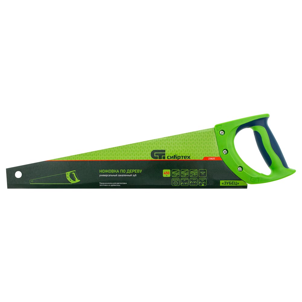 Ножовка по дереву "Зубец", 450 мм, 11 TPI, зуб 2D, калёный зуб, 2-х компонентная рукоятка Сибртех