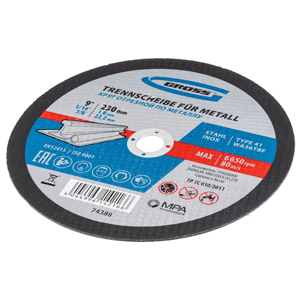 Круг отрезной по металлу, 230 х 1.8 х 22 мм Gross 74388