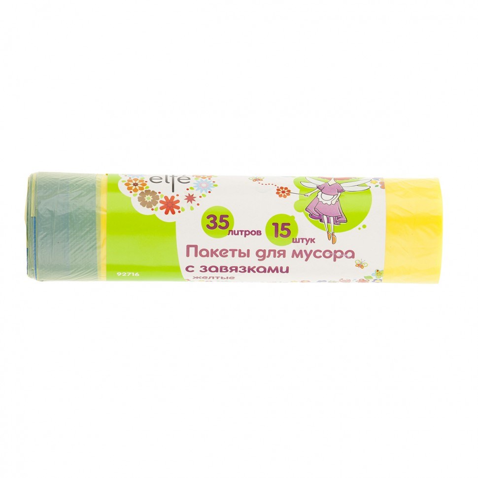 Пакеты для мусора с завязками 35 л х 15 шт, желтые, Elfe 92716