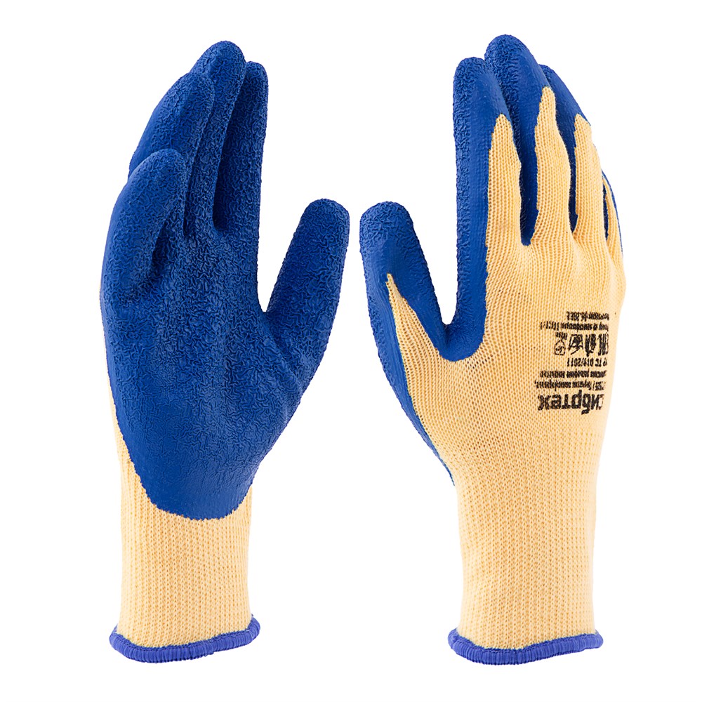 Перчатки трикотажные, полиэфирные, латексное рельефное покрытие, размер 9 Сибртех 677525