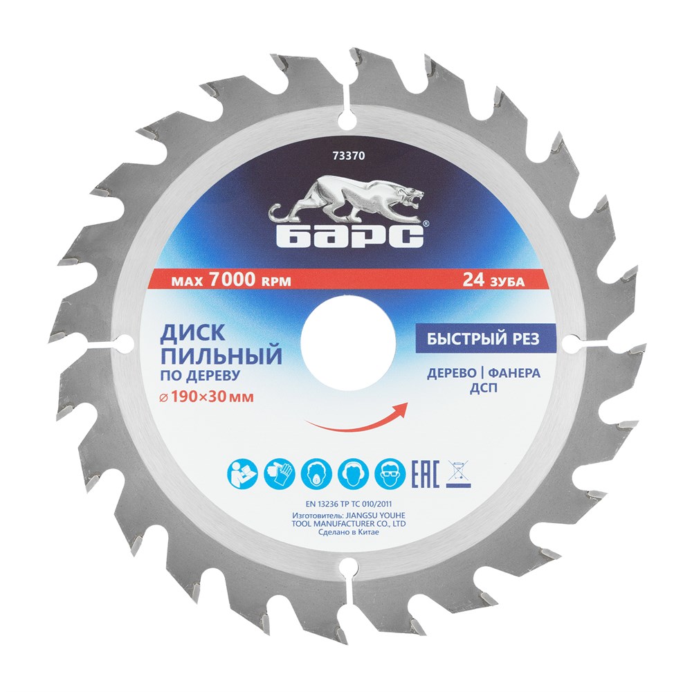 Представляем вам пильный диск по дереву марки БАРС с артикулом 73370. Этот диск диаметром 190 x 30 мм с 24 твердосплавными зубьями идеально подходит для циркулярных и торцовочных пил. Благодаря универсальному типу зуба АТВ, он быстро и эффективно распиливает древесину, фанеру, МДФ и ДСП как в продольном, так и в поперечном направлениях.