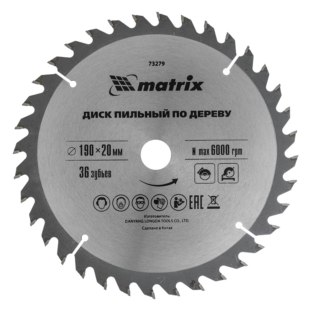 Пильный диск по дереву, 190 х 20 мм, 36 зубьев, кольцо 16/20 Matrix Professional 73279