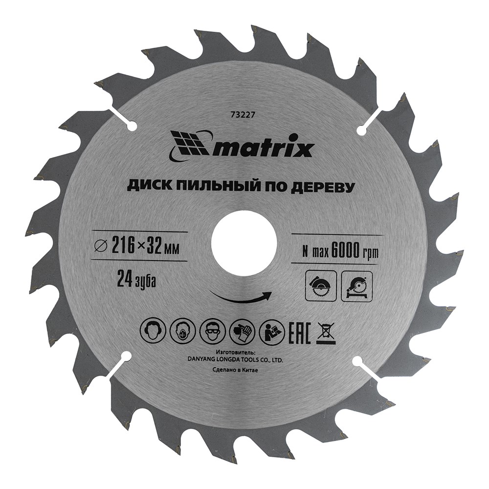 Пильный диск по дереву, 216 х 32 мм, 24 зуба, кольцо 30/32 Matrix Professional 73227