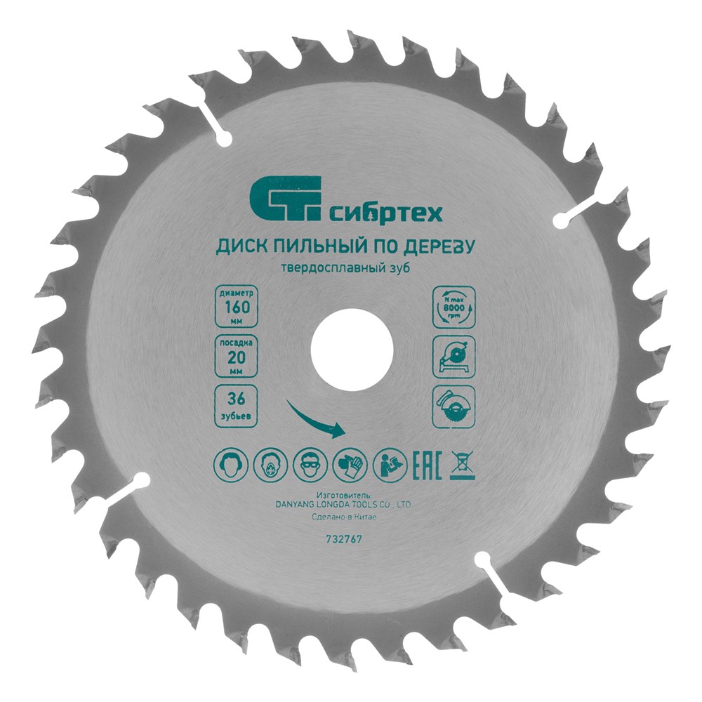 Пильный диск по дереву, 160 х 20 мм, 36 зубьев, кольцо 16/20 Сибртех 732767