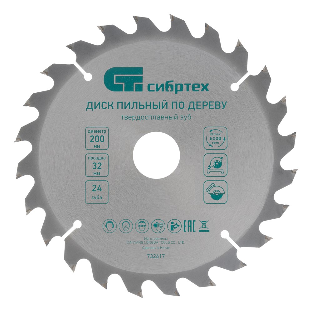 Пильный диск по дереву, 200 х 32 мм, 24 зуба, кольцо 30/32 Сибртех 732617