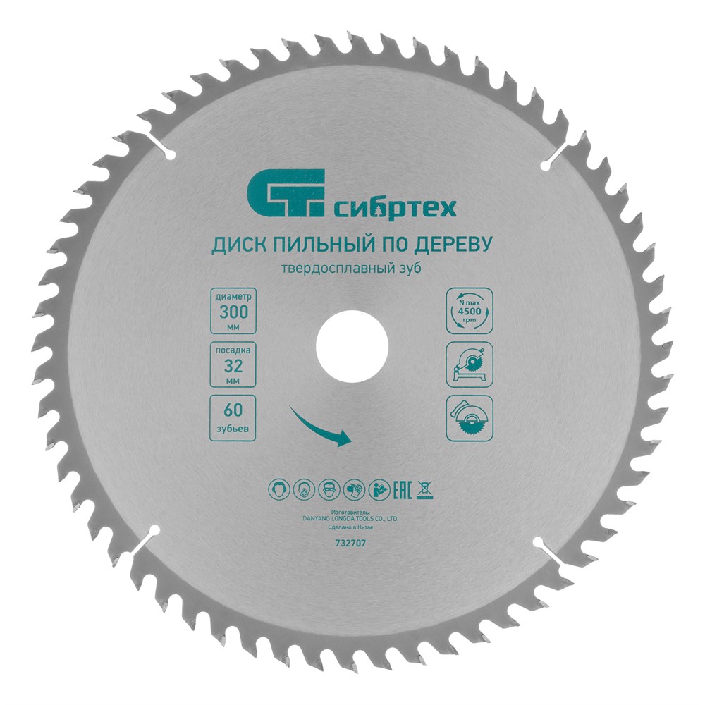 Пильный диск по дереву, 300 х 32 мм, 60 зубьев Сибртех 732707