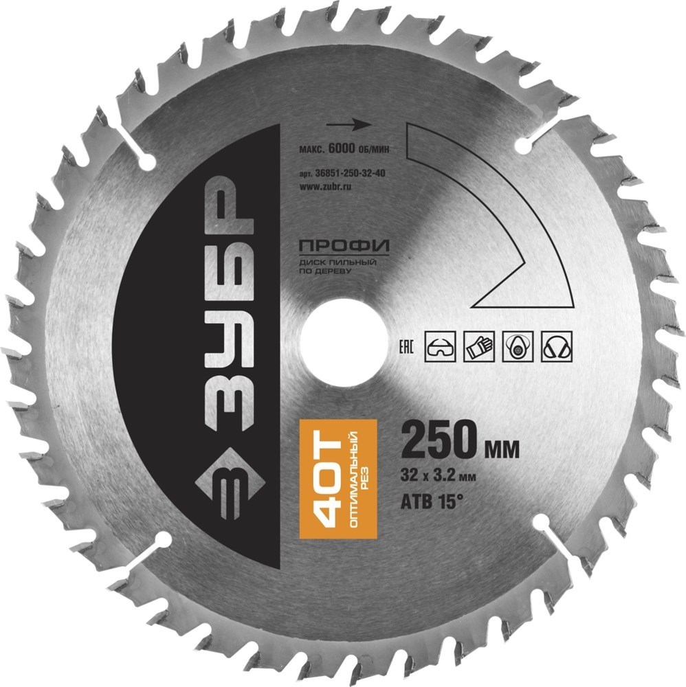 Пильный диск по дереву Зубр Профессионал Оптимальный рез 250x32мм, 40Т 36851-250-32-40 имеет лучшее сочетание скорости реза, чистоты пропила, точности реза и долговечности. Автоматическая заточка и шлифовка зубьев значительно повышают точность и чистоту резов. Особые компенсационные прорези позволяют исключить возникновение внутренних напряжений и деформацию диски от перегрева при работе.Характеристики