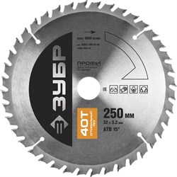 Пильный диск по дереву Зубр Профессионал Оптимальный рез 250x32мм, 40Т 36851-250-32-40