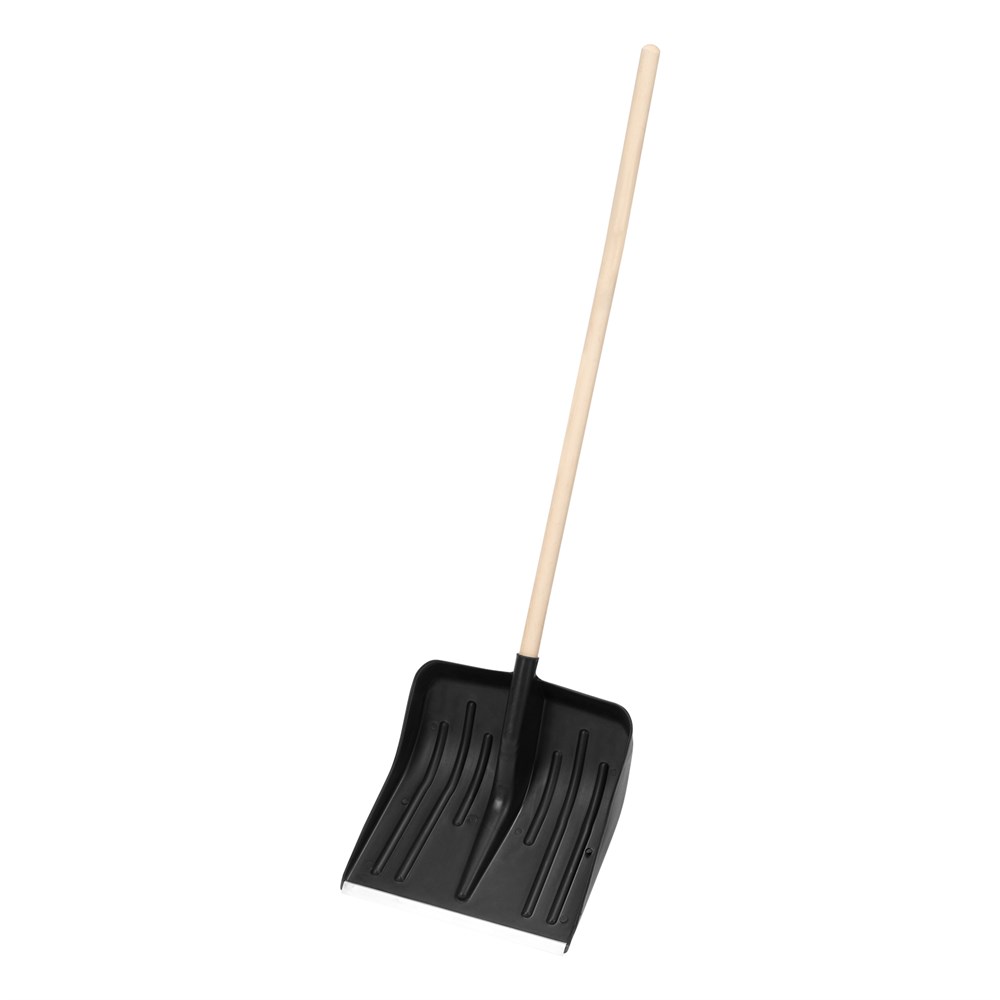 Лопата для уборки снега пластиковая, 420 х 425 х 1550 мм, деревянный черенок, Сибртех 61580