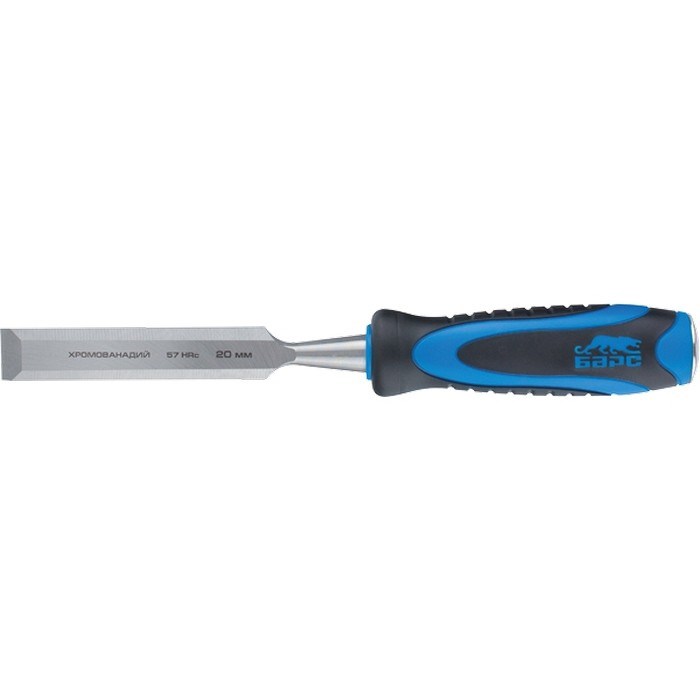 Долото-стамеска, плоская, 8 мм, двухкомпонентная рукоятка, металлический затыльник Барс 24633