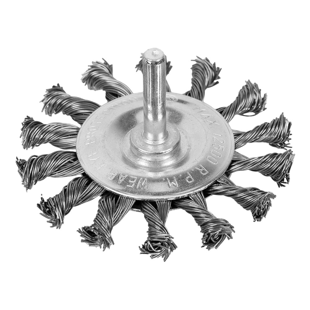 - Эффективность и износостойкость: Щетина из крученой стальной проволоки диаметром 0,5 мм успешно справляется с толстым слоем ржавчины или лакокрасочного покрытия.