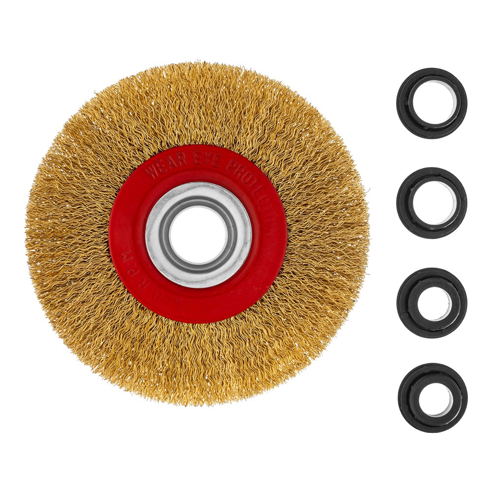 Щетка для точила, 125 мм, посадка 20 мм, плоская, латунированная витая проволока Matrix 74659