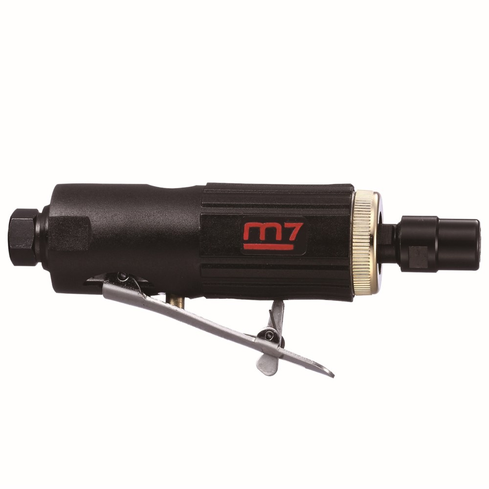 Входное отверстие для воздуха 1/4" Предохранительный стопор препятствует случайному включению В комплекте два цанговых патрона: 3 мм; 6 мм Материал рукоятки выполнен из температурно и каррозийно устойчивого материала Применяется при шлифовке и зачистки краев и каналов в различных деталях Диаметр хвостовика: 6&3 мм. Скорость свободного вращения: 25000 об/мин. Среднее потребление воздуха: 283 л/мин. Рабочее давление воздуха: 6.3 бар. Общая длинна: 155 мм Мощность: 0.3 л.с. Вес: 0.38 кг. Минимальный внут. диаметр шланга: 10мм Уровень шума: 81.5 мм
